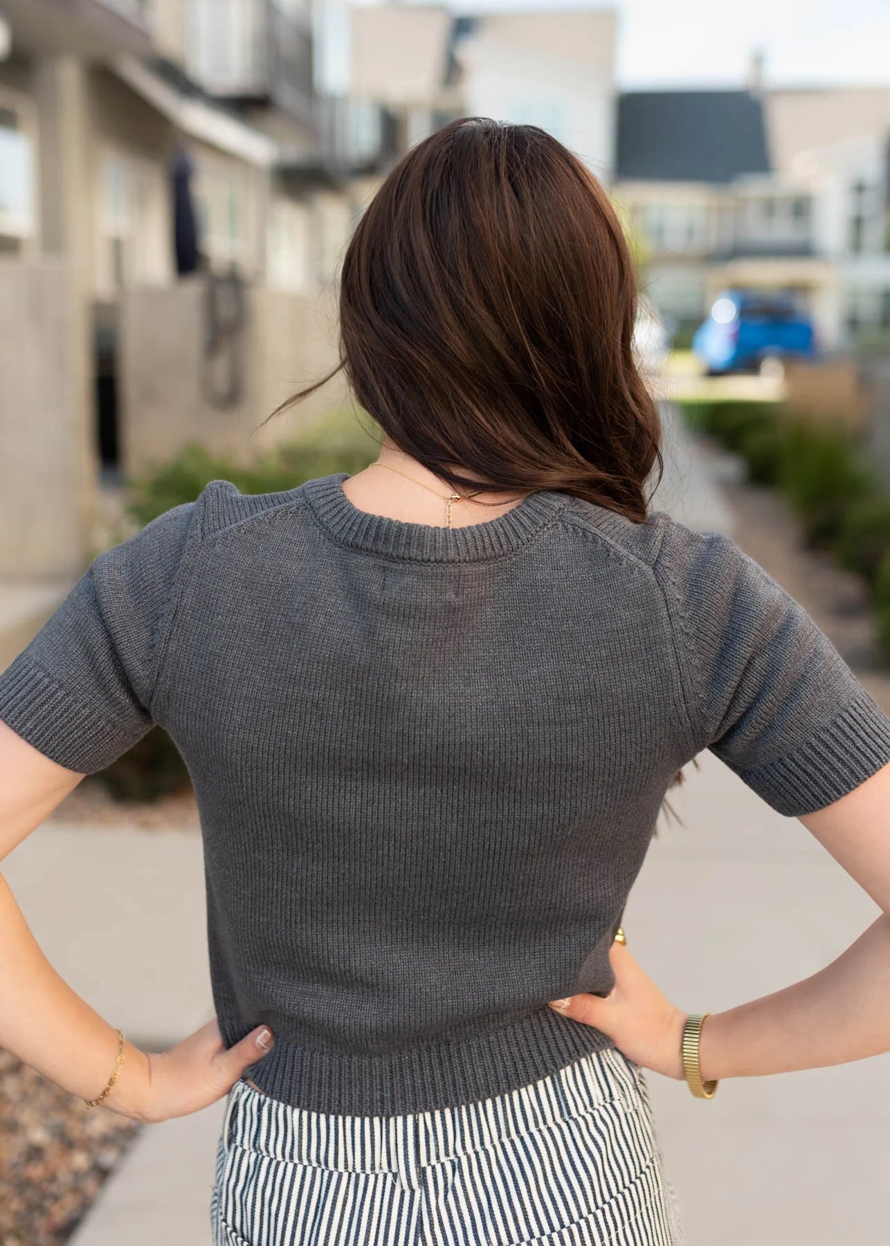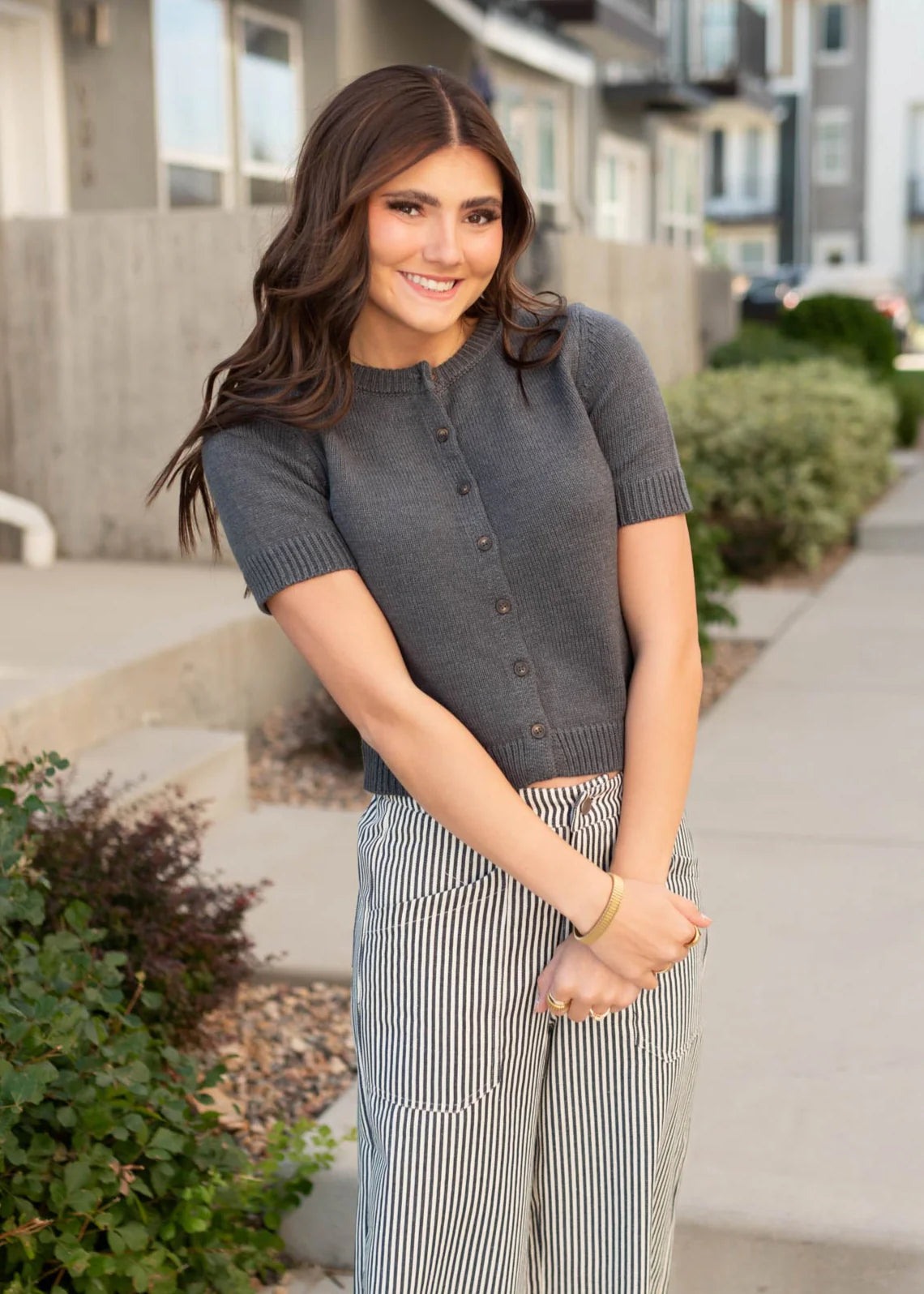 Short sleeve cardigan-style top