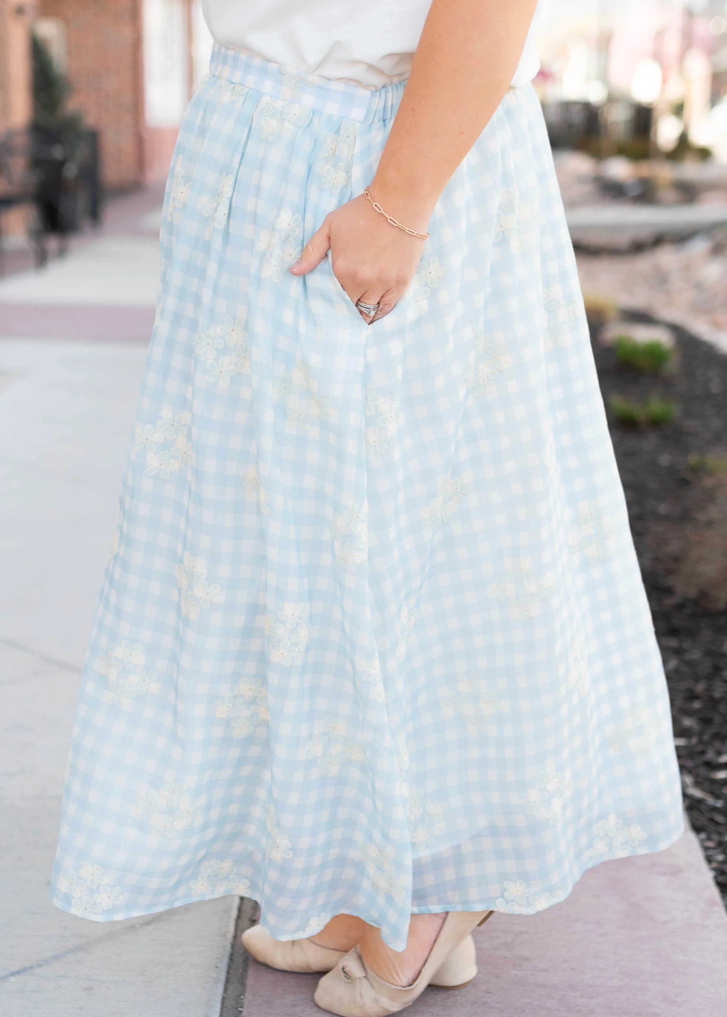 Sweet, feminine, and full of charming detail — the Brittany Light Blue Gingham Skirt is a beautiful piece that feels effortlessly pretty. Designed with a soft light blue and ivory gingham print, this skirt features delicate embroidered florals that add a lovely touch of texture. The elastic waistband keeps the fit comfortable and easy to wear, while the lined design and pockets make it as practical as it is cute. It’s an easy favorite you’ll reach for again and again.