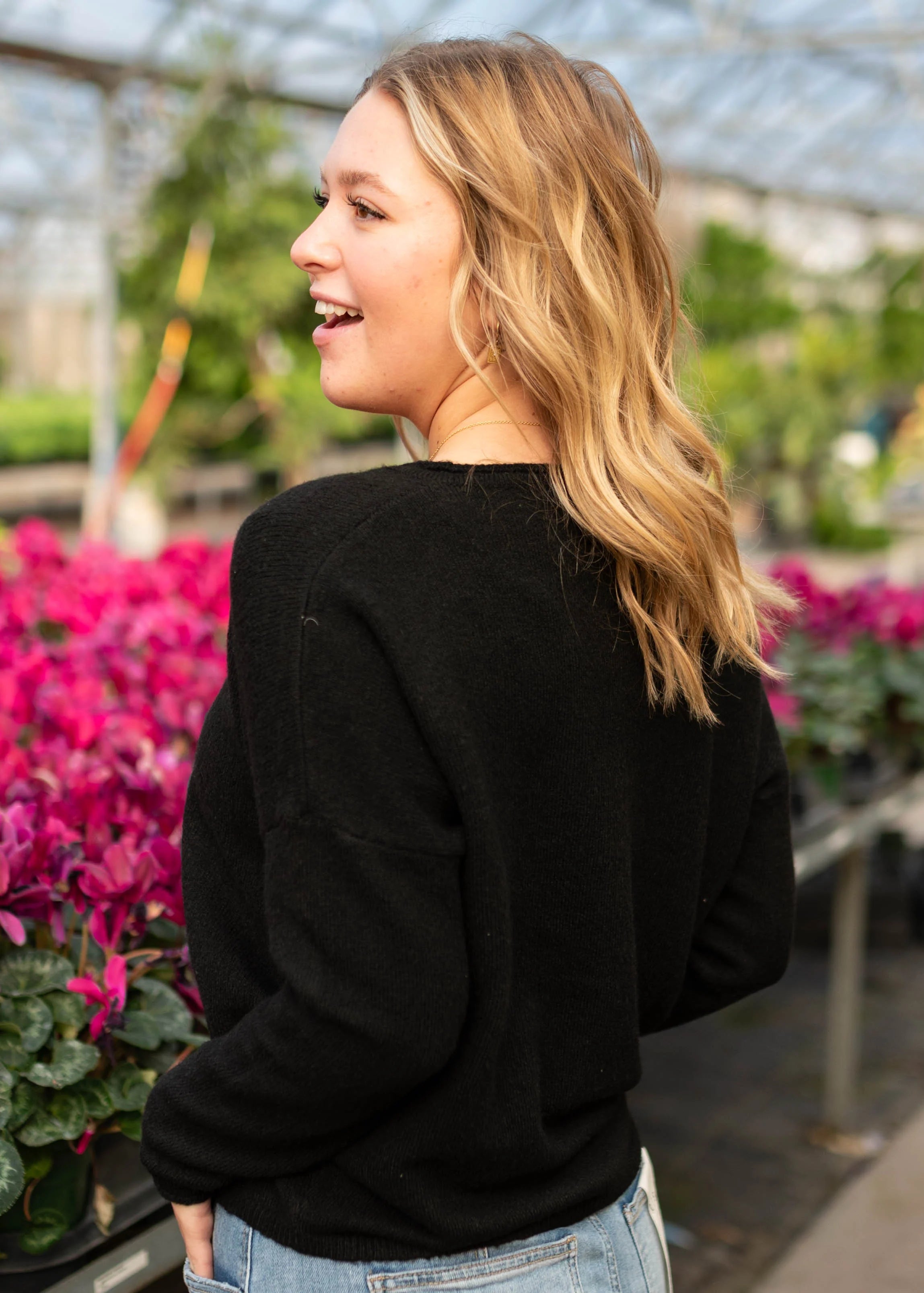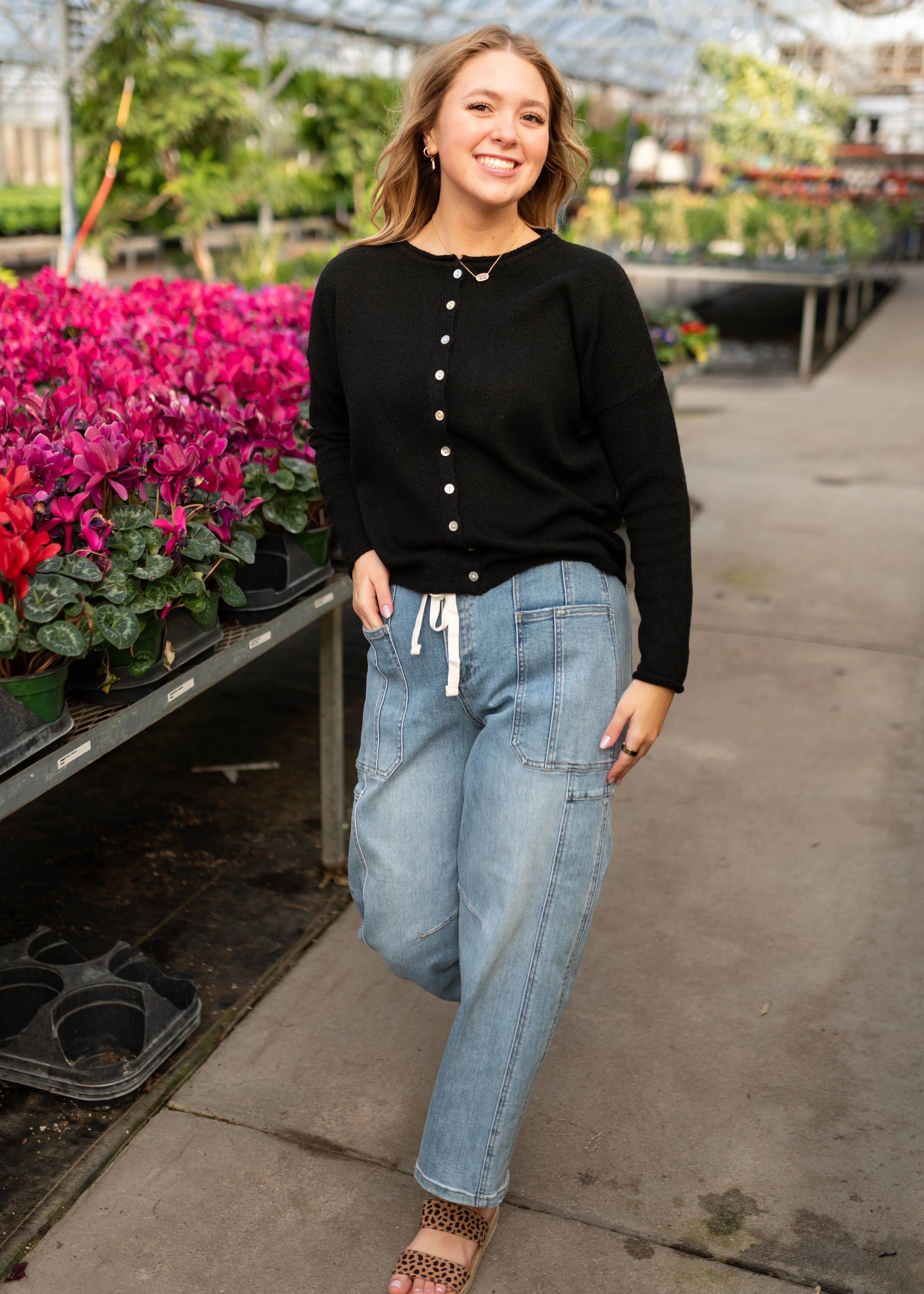 Soft, versatile, and effortlessly chic, the Laura Black Cardigan is the perfect layering piece for any wardrobe. Its buttery-soft fabric and relaxed fit make it easy to throw on over almost anything, adding warmth and polish in one step.