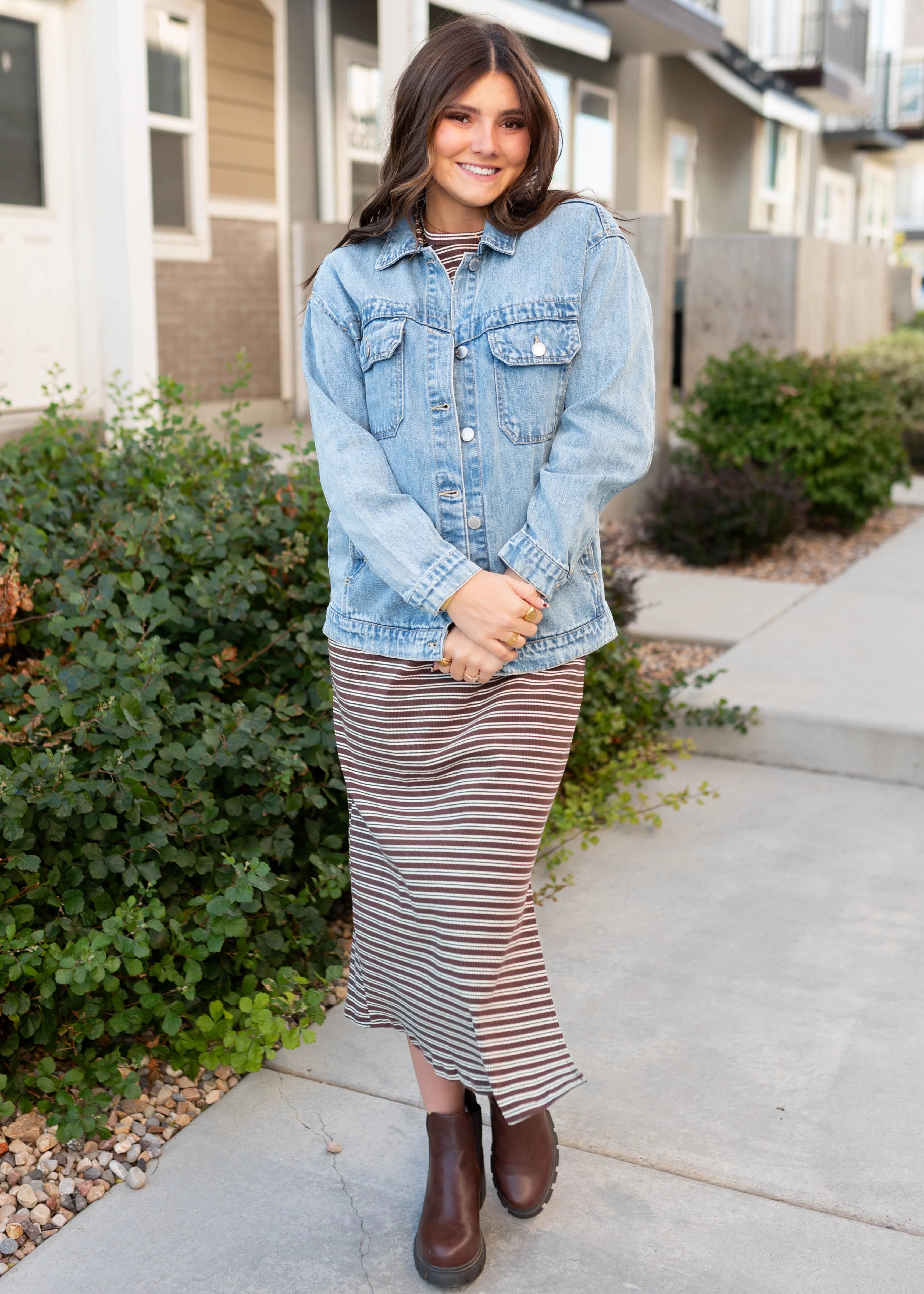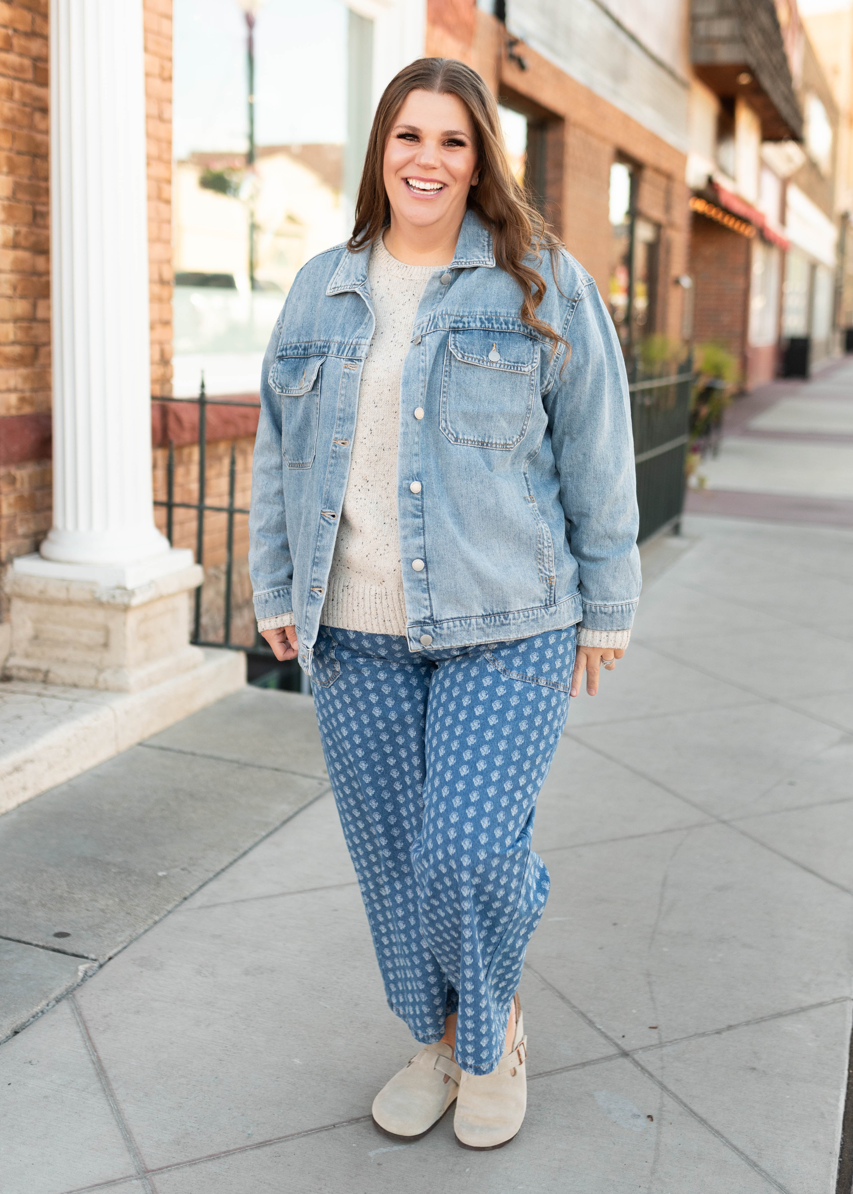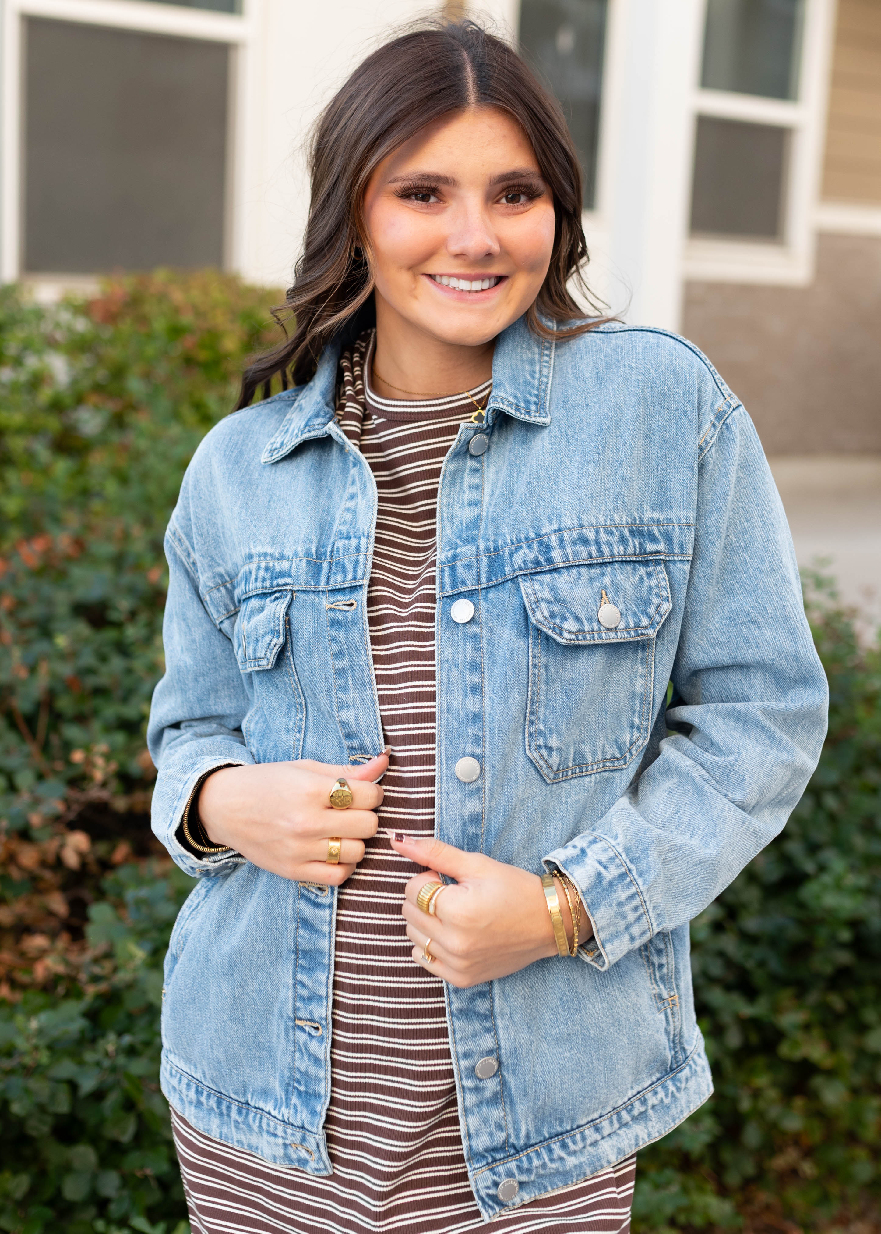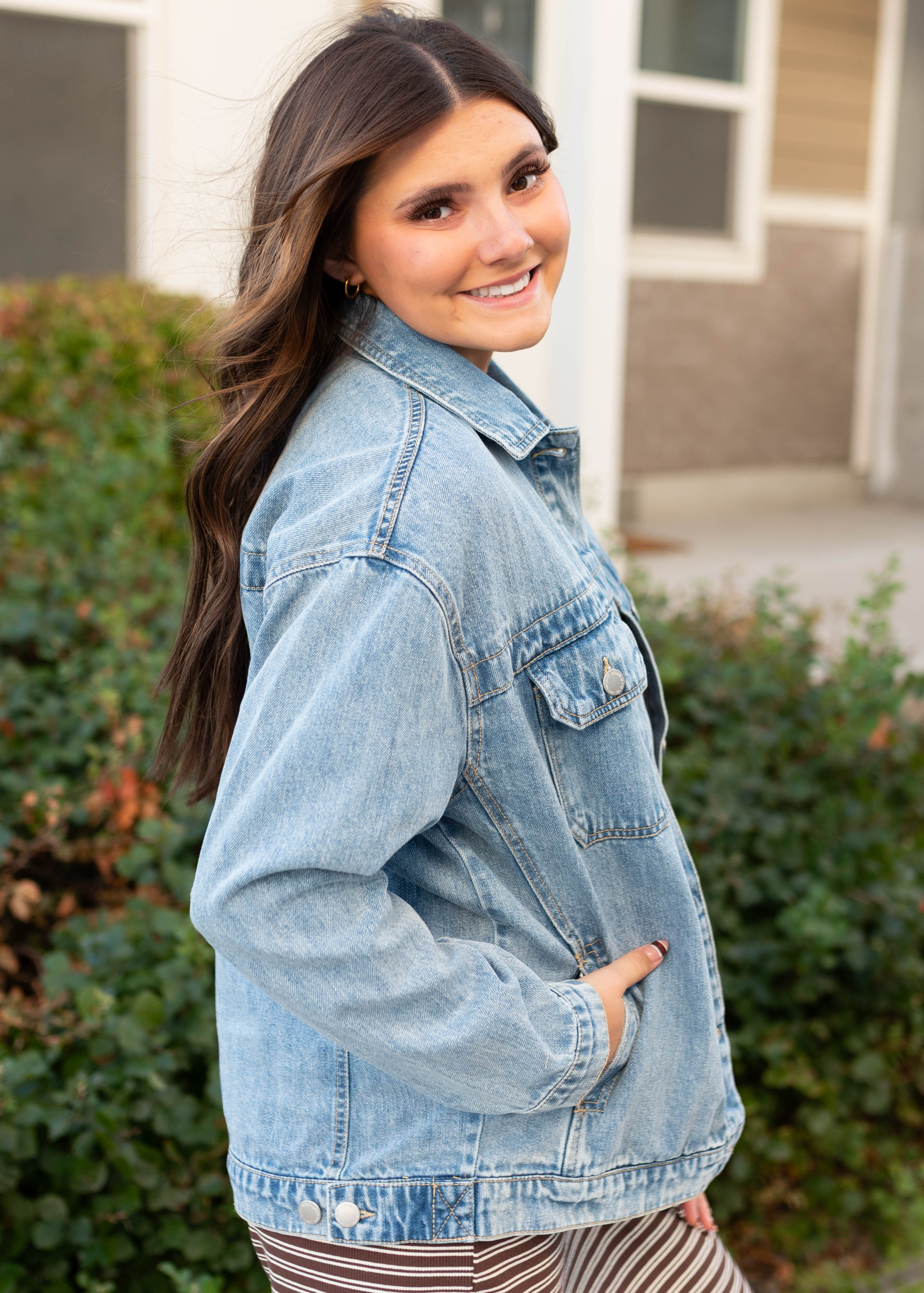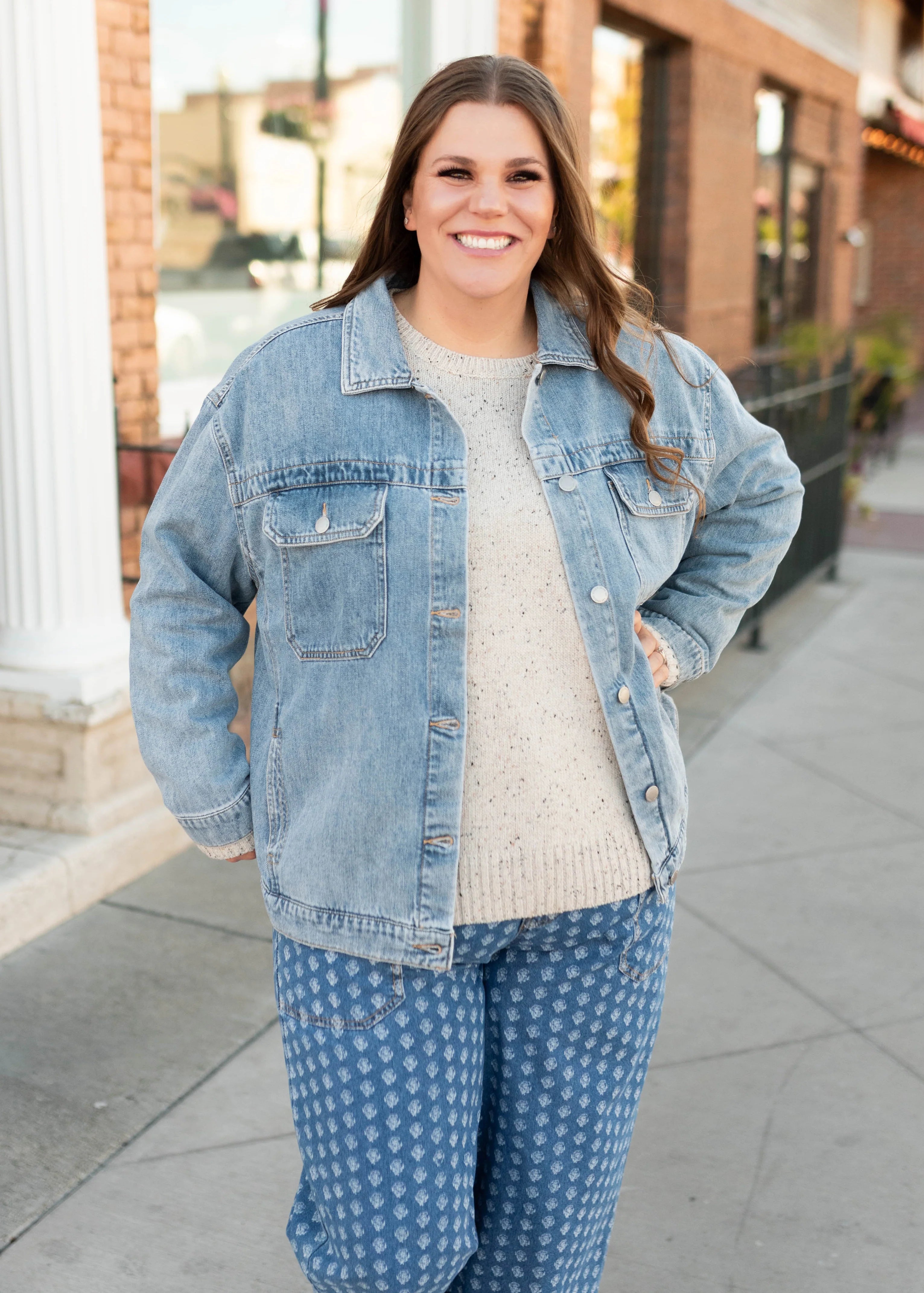 Meet your new favorite layer! The Leigh Jacket has the perfect oversized fit that’s easy to throw on over anything. With a classic collared neckline, functional front buttons, and chest + side pockets, it’s as practical as it is stylish. Buttoned wrists give you a little extra adjustability, making this denim jacket a versatile must-have for everyday wear.