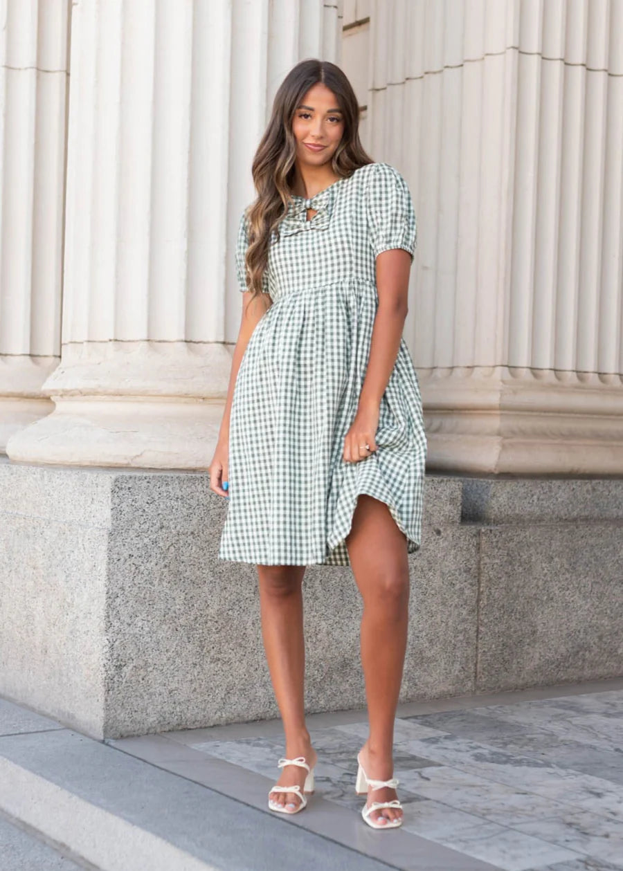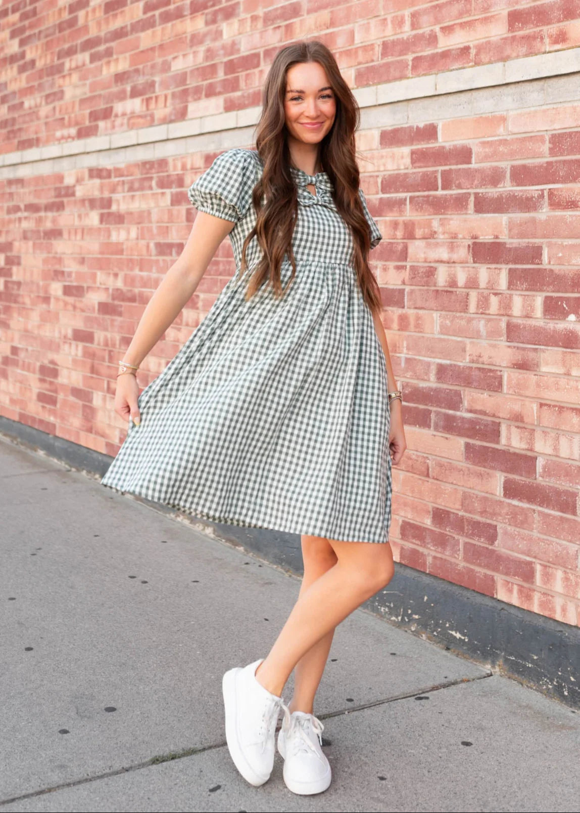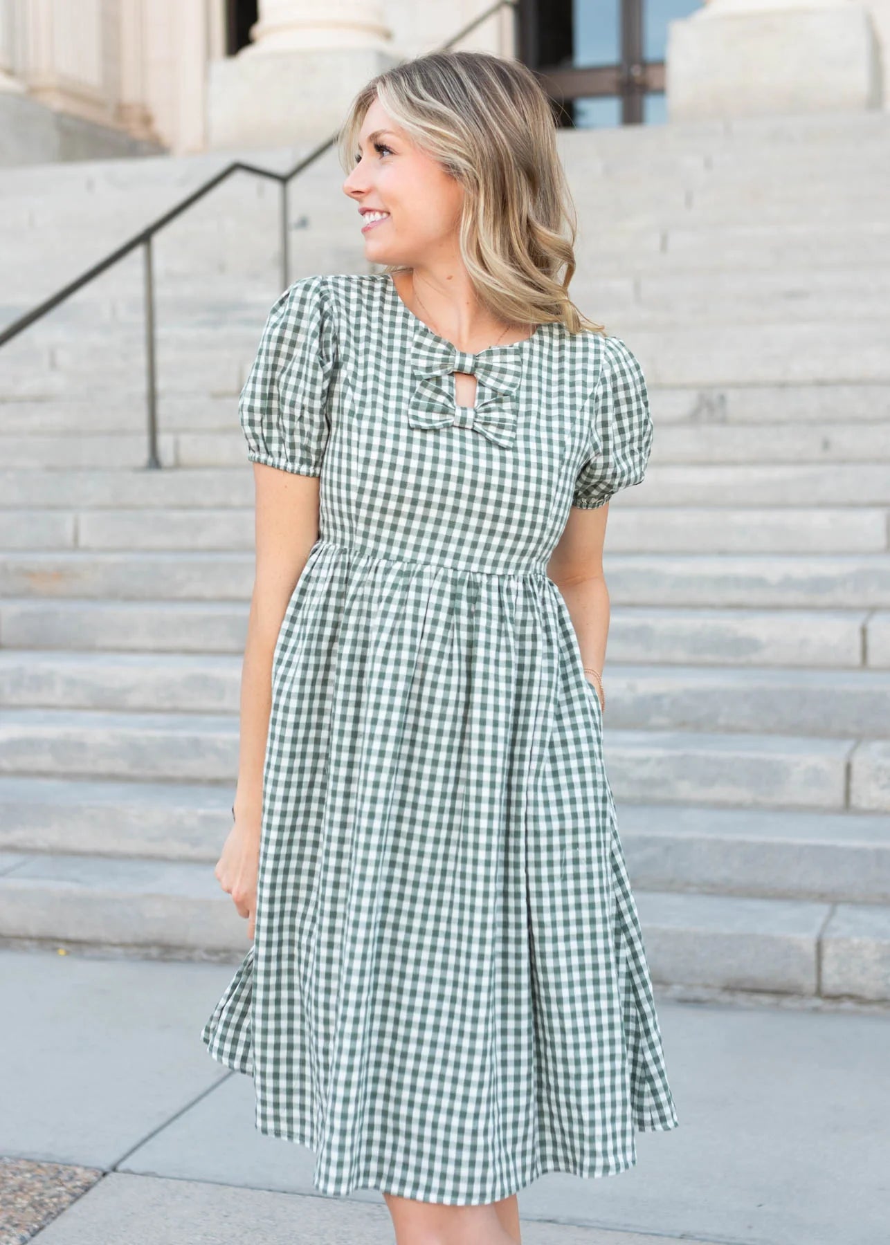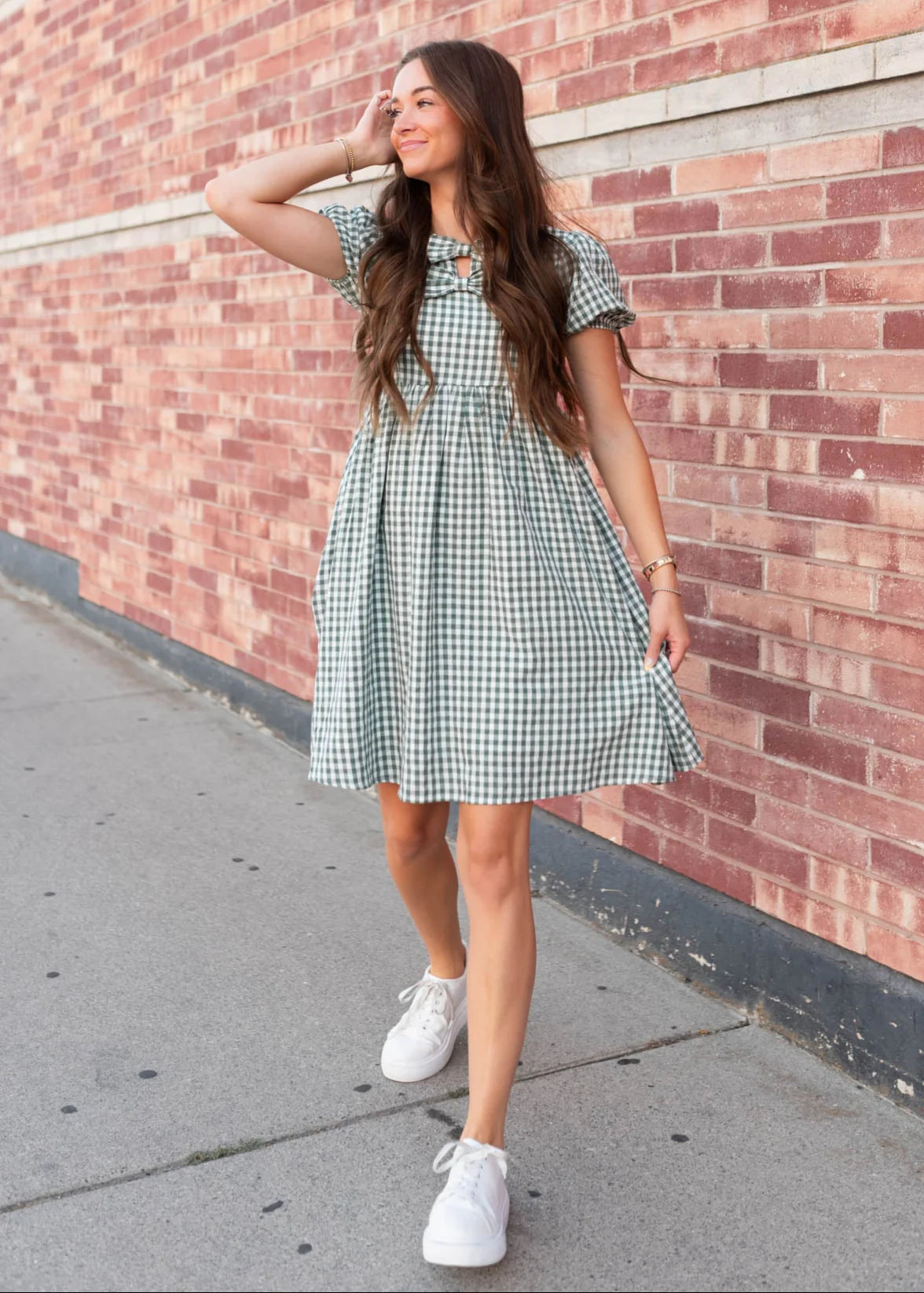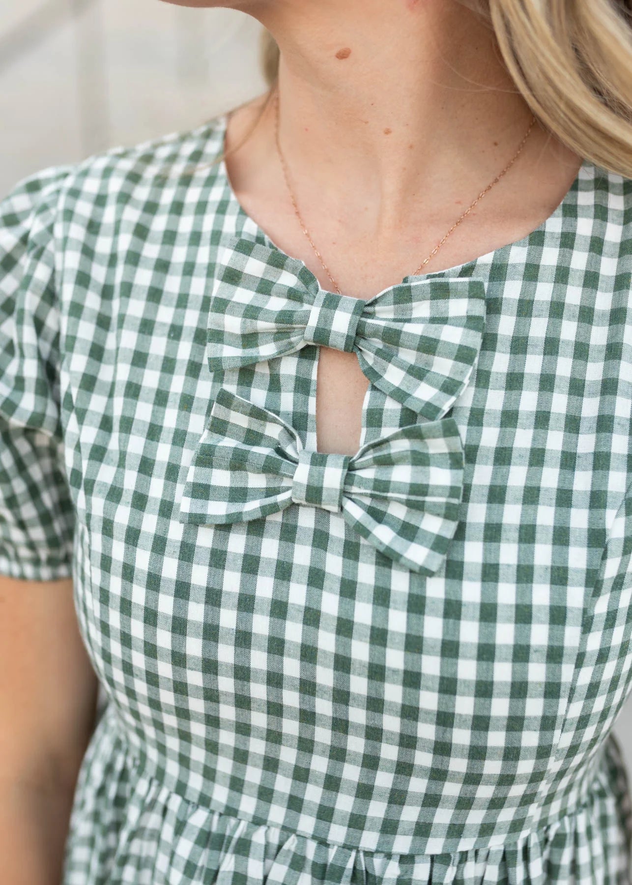 Sweet, playful, and oh-so-darling—the Linnea Sage Gingham Bow Dress is full of charm! Featuring two statement bows on the bodice (with a hidden snap on top for easy wear), this dress is all about the details. The soft sage gingham, puff sleeves, and tiered fit make it a perfect blend of fun and feminine. Plus, with pockets and full lining, she’s just as practical as she is pretty!