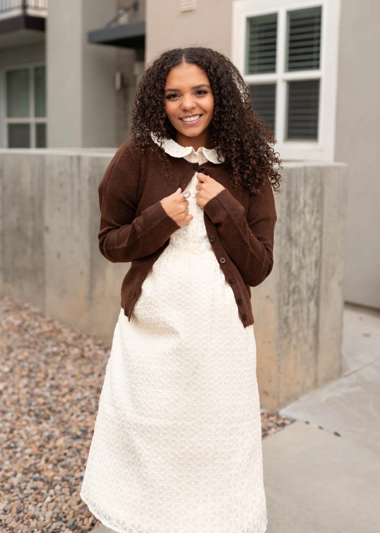 Maddie is 5'7.5" and wearing a small