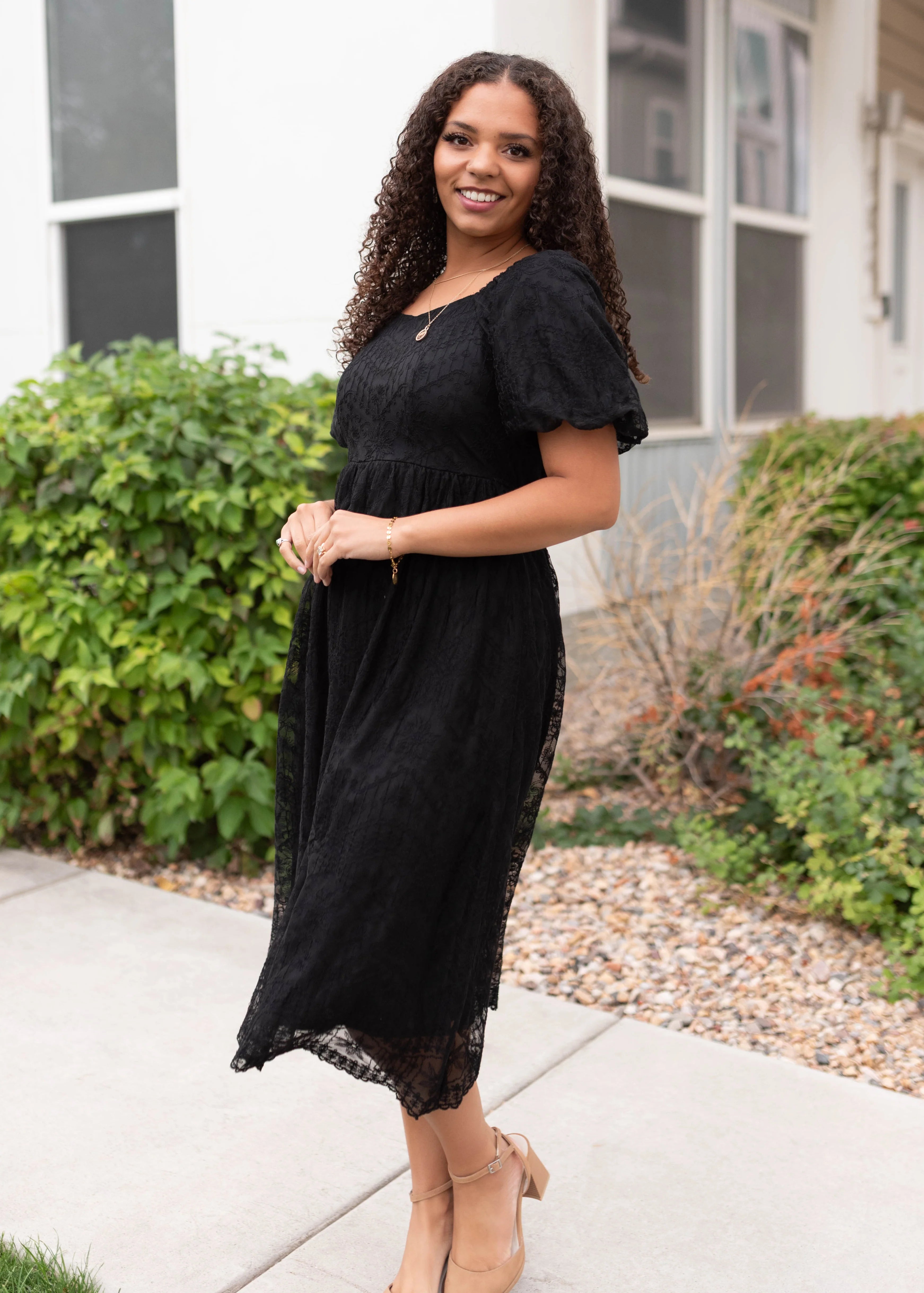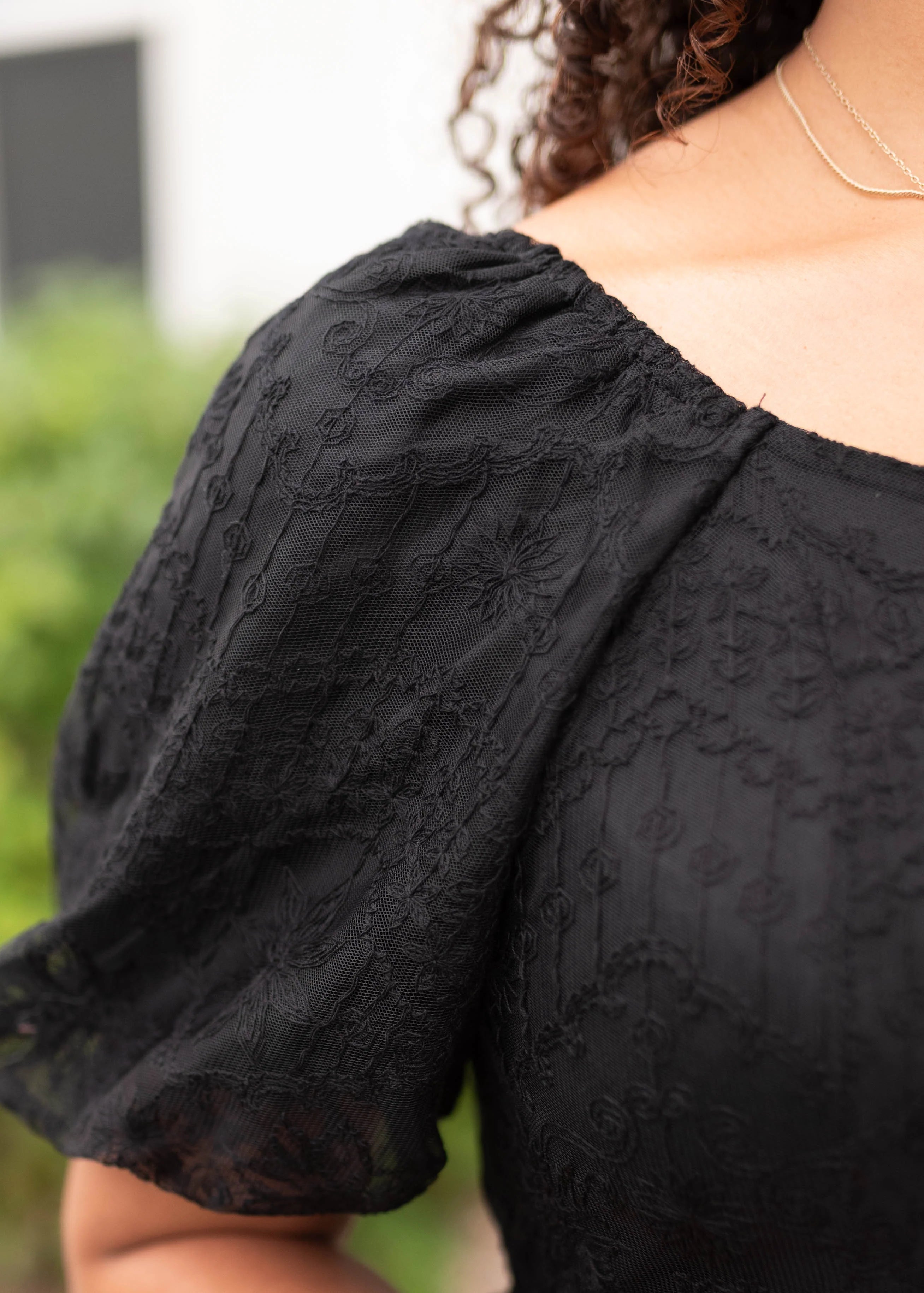 The Misty Dress is all things elegant and easy to wear. With a sweetheart neckline and elastic puff sleeves, it balances feminine detail with a comfortable fit. The mesh lace fabric gives it that extra-special finish, while the elastic waist keeps it flattering. Fully lined so you can feel confident all day (or night!), this dress is the perfect blend of pretty and practical.