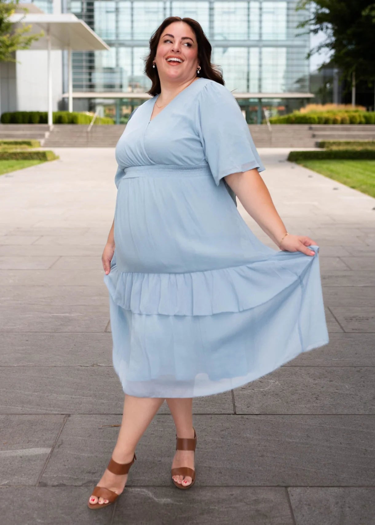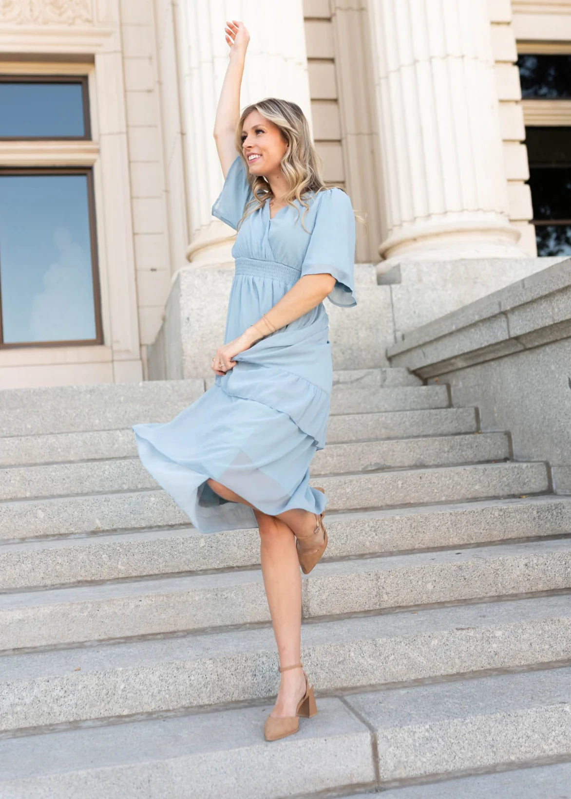 Pretty Light Blue Flutter Sleeve Dress – Nursing Friendly | Lena Layne