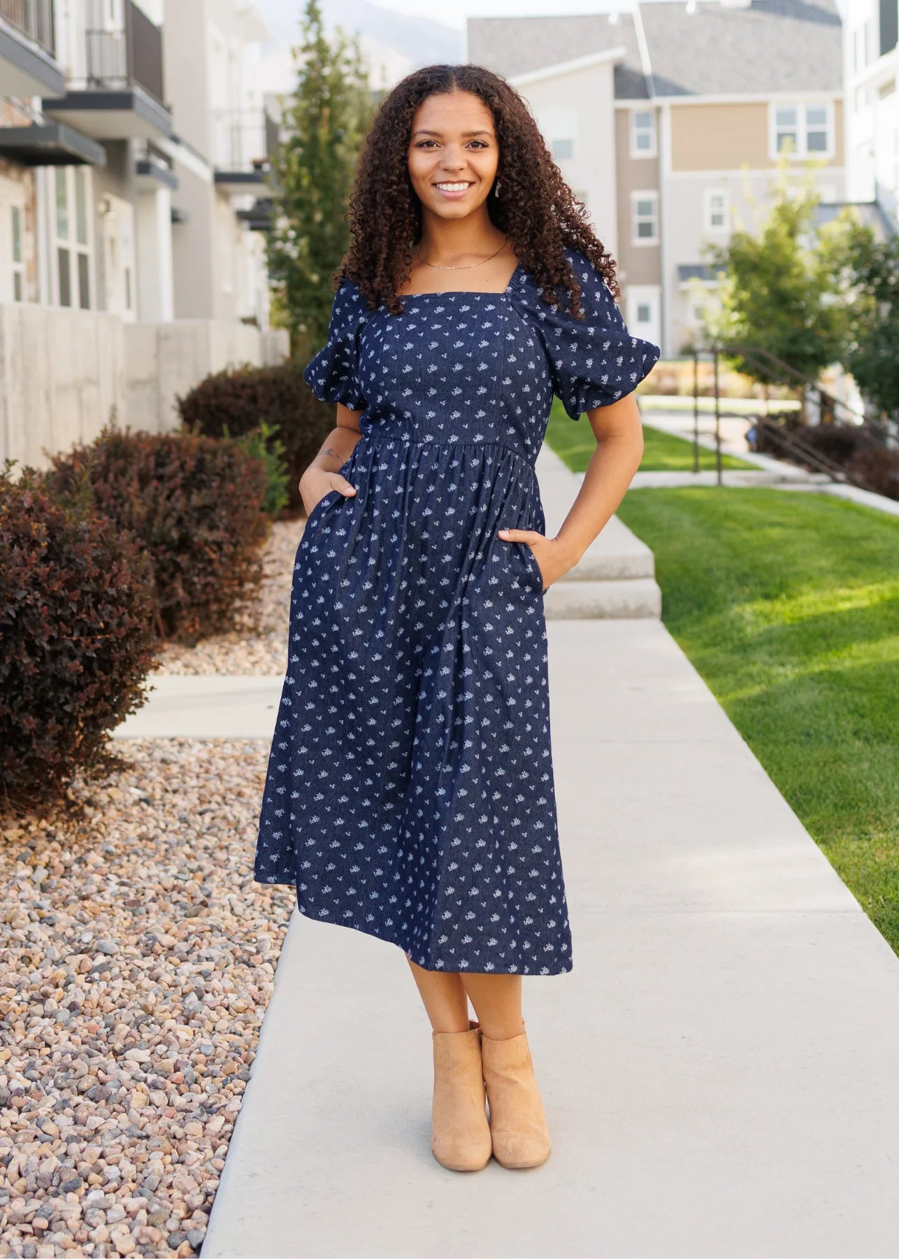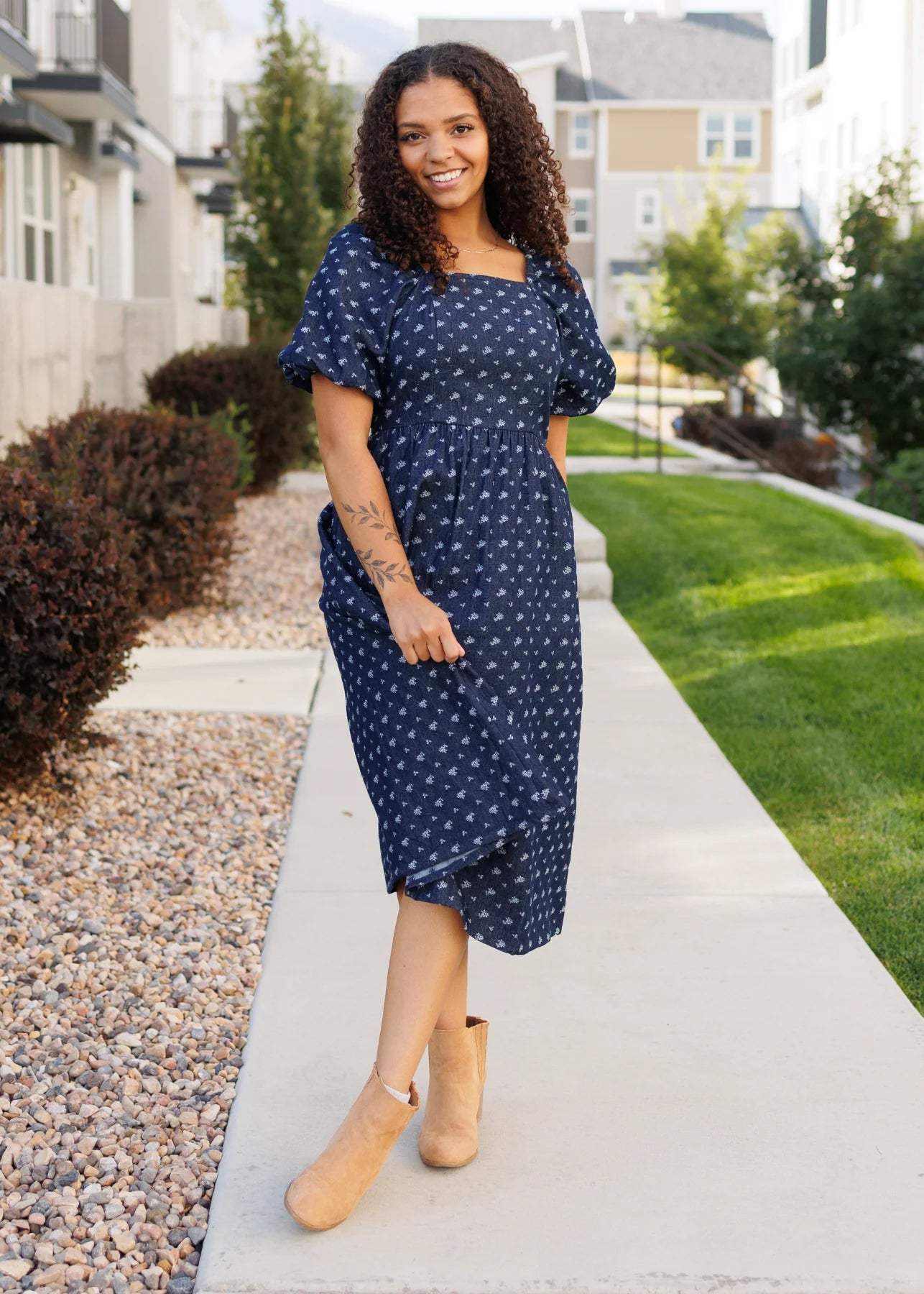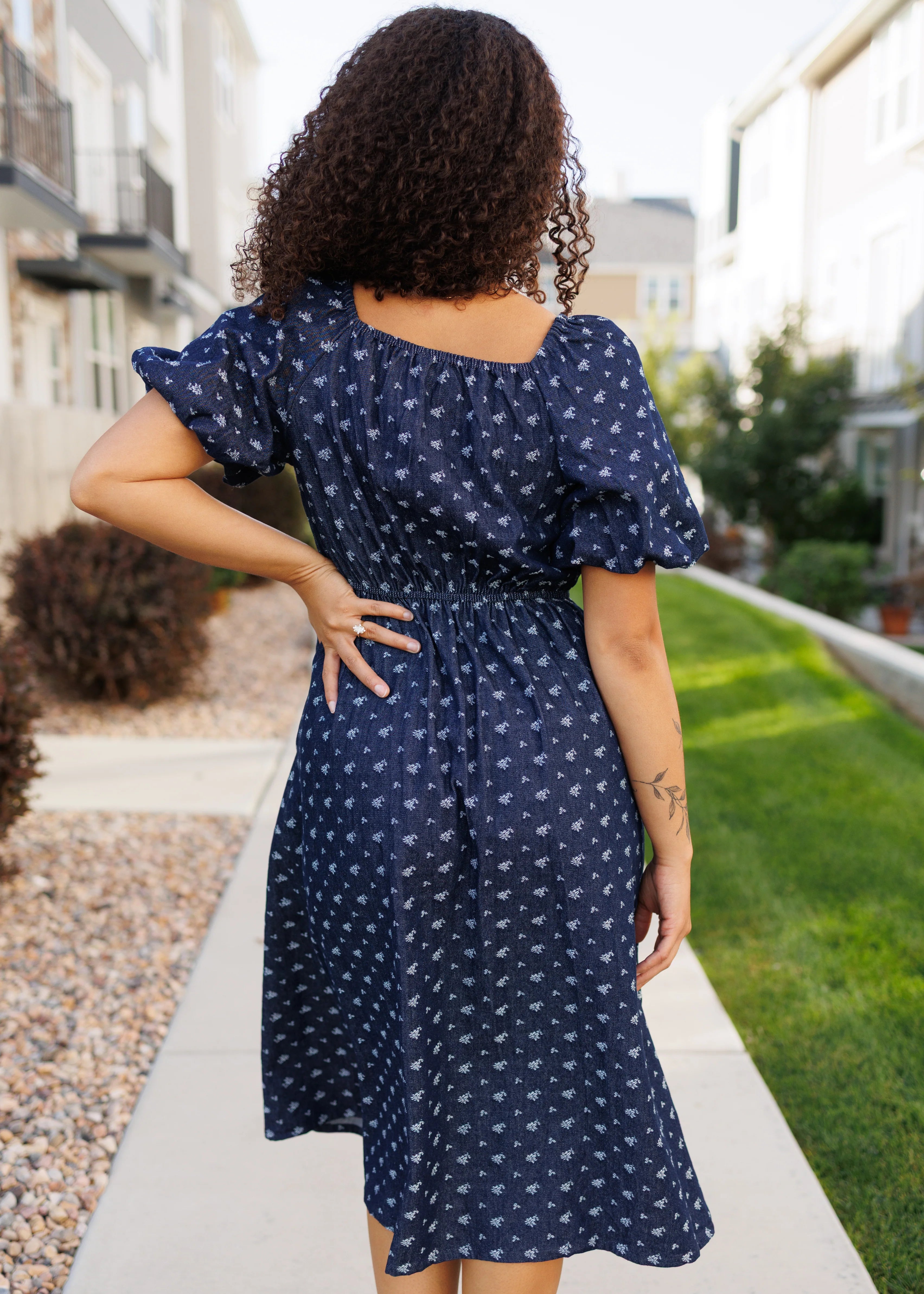 Say hello to the sweetest denim moment! The Tess Dress is made from a light denim fabric sprinkled with a darling floral pattern that feels both fresh and feminine. The square neckline is framed with gentle elastic, giving you comfort and flexibility, while the elastic waist and sleeves keep things flattering and easy to wear. With a lined bodice and functional side pockets (because pockets are a must!), this dress is as pretty as it is practical.